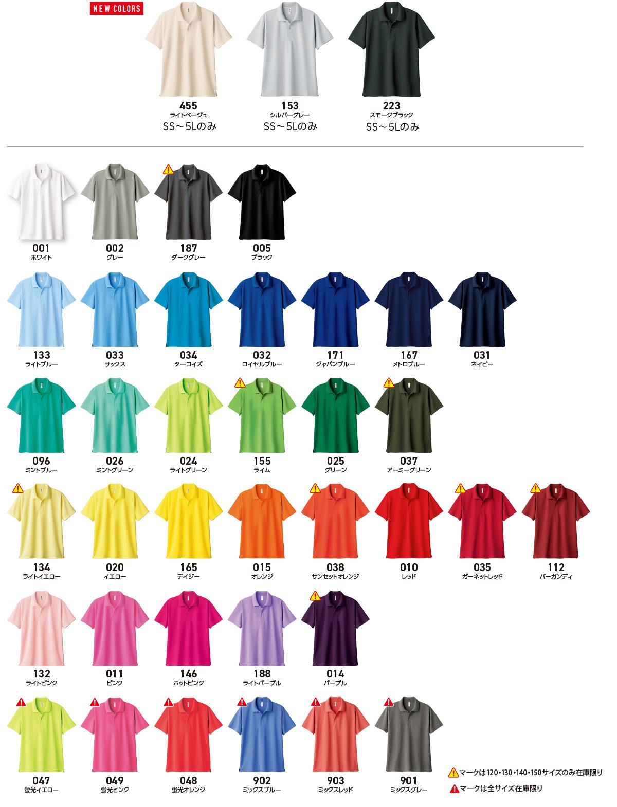 | サイズ | ホワイト・カラー・蛍光カラー | ミックスカラー |