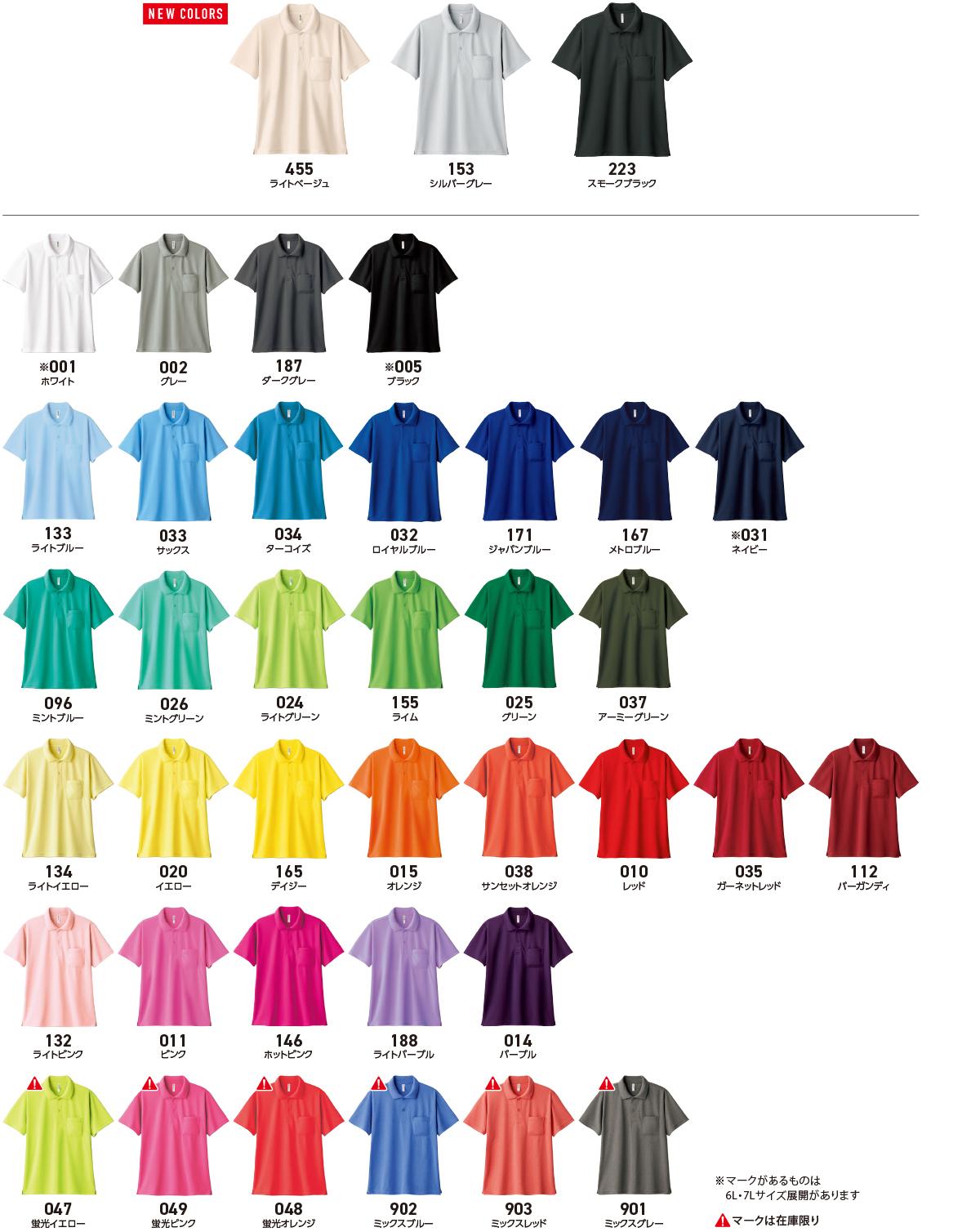 サイズホワイト・カラー・蛍光カラーミックスカラー