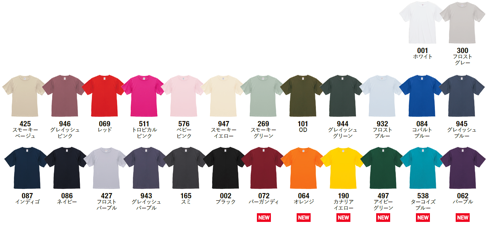 ※コバルトブルー・レッド・ネイビー・インディゴ・ブラック・OD・トロピカルピンクはカチオン可染ポリエステルを使用しています。